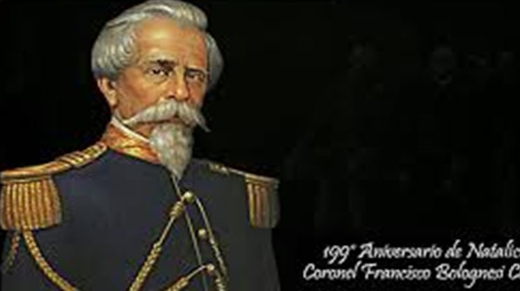 Francisco Bolognesi Cervantes, quien con el grado de coronel, el 7 de junio de 1880 defendió la plaza de Arica, enfrentando a fuerzas muy superiores en numero y poderío bélico, quien tras la promesa de pelear Hasta quemar el ultimo cartucho, murió junto a sus oficiales y soldados, en la cima del Morro de Arica